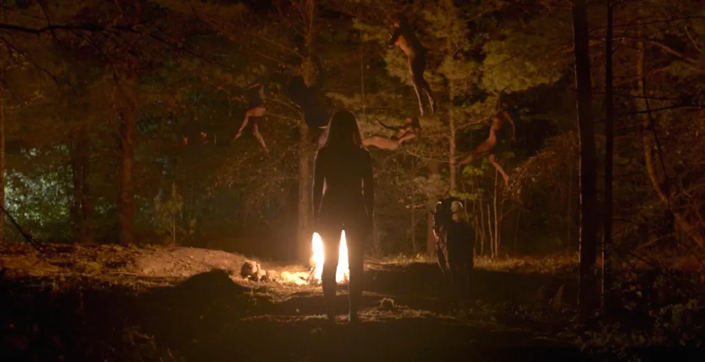 By contrast, the witch is a feminist symbol in the film who finds freedom outside the so-called civilized norm. She breaks free from a patriarchal, religious power structure—breaks free even from her poverty—to take full joy in the pleasures of life, “live deliciously” as the goat puts it (I’ll never forget that moment sitting in the cinema and suddenly hearing Black Phillip’s voice, so soft and unsettling coming from the back speakers, whispering in our ears as it were). As such the forest in the film, shrouded in secrecy and darkness, far removed from the hypocrisy of civilization, is a gateway to liberation.